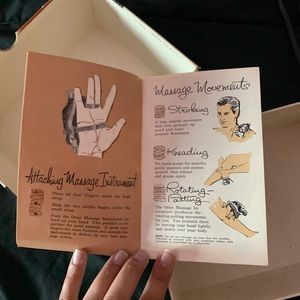 This plugs in fine into a regular US outlet. It just vibrates like crazy and that motion makes for a decent massage. Comes with a booklet on how to use it. In original box. Looks like it’s from the 1950’s.