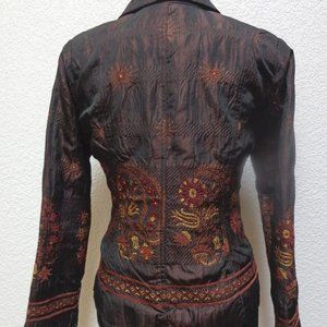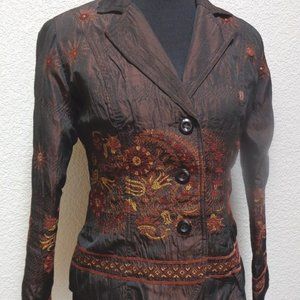 ELCC WOMENS JACKET/BLAZERS SZ S SMALL BROWN FLORAL PRINT BUTTON UP LS 60% POLYESTER 40% RAYON