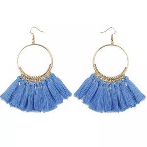 Fashion Bohemian Big Circle Tassel Earrings Blue