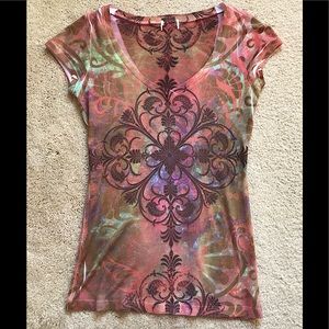 🆕🔥CHARLOTTE RUSSE REALLY CUTE V-NECK SHORT SLEEVE SHIRT MULTICOLORED FITTED