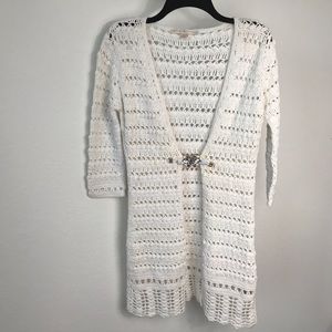 Boston Proper Stitch Jewel Crystal Button Cardigan