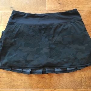 Lululemon Pacesetter Skirt-HTF Black Savasana Camo Print-Excellent Condition!! Back zip pocket, 2 front gel pockets, tennis ball pocket, never ending drawstring at the waist, no slip grippers on the legs, 4 way stretch. Check out my closet for tons of other lulu and athleta items!! Bundle & save-❌lowball offers❌trades