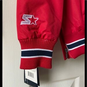 This is a brand new vintage style St. John’s “Red Storm” starter coat. Colors are Red, Navy blue and White. Classic design! Great coat for all of you 80’s babies.