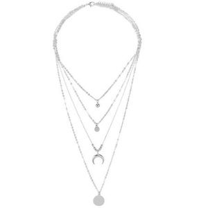 Beautiful Boho Multilayered long horn and crescent moon choker necklace