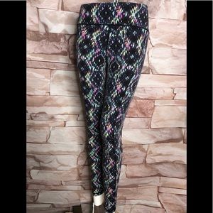 Victoria’s Secret VSX Sport woman legging size M, 77% nylon, 23% lycra, color navy blue, pink yellow, green turquoise, waist circumference 28 inch, inseam 28 inch, good condition. (B-028)