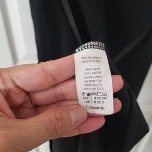 Black knee length dress with decorative shoulder ties and skinny black ribbon back tie. Sheer overlay. Worn twice to weddings.