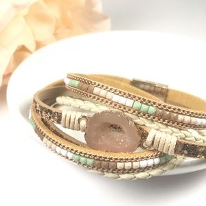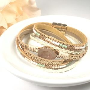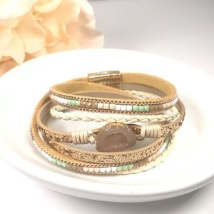 NEW WITH TAGS Bohemian Quartz Leather Wrap Bangle Bracelet
