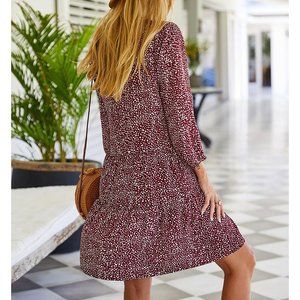 Red Confetti Print Button Down Shift Dress