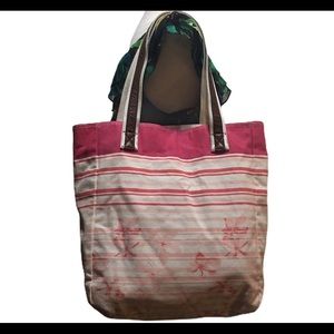 Aeropostale Floral Striped Tote White Pink.