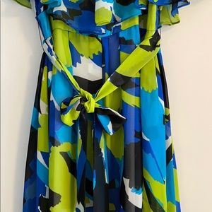 Multicolor Dress with a belt. 100% polyester; lining: 100% polyester. Hidden side zipper. Size S