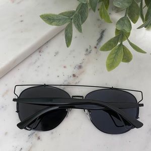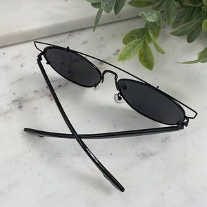 Bold & daring, the "Amira" sunglasses are an oversized modern aviator style with a winged brow bar. These lightweight, classic sunnies feature black glossy frames & black lenses. The frame is metal alloy & the black arms are plastic. There are clear rubber nose pads. New with protective packaging. Available in additional colors in separate listings.