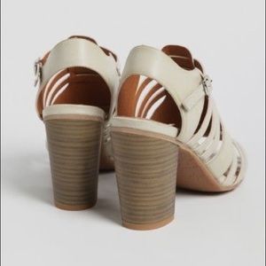 Fisherman-reminiscent sandal featuring woven caged upper and dramatic stacked heel. Imported By BC X FreePeople