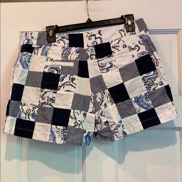 Vineyard vines ladies shorts. Size 10. Worn twice and in great condition! Navy and white patchwork pattern. Pair with your favorite white or blue shirt! Adorable on.