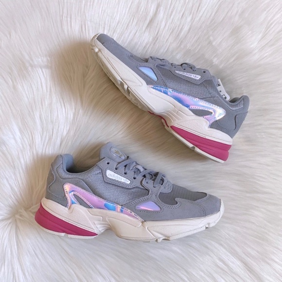 New In Box- Adidas Originals Women’s Falcon Shoes In Light Grey/ Chalk White/ Real Magenta.