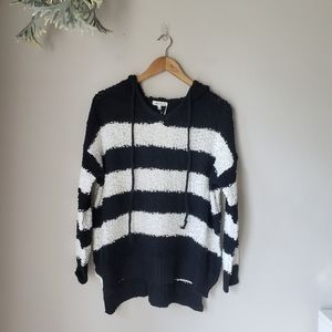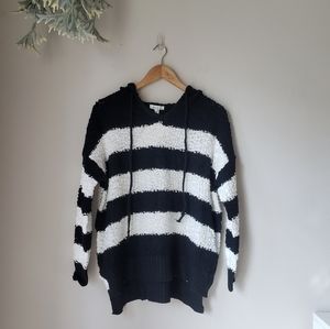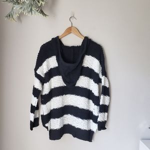 🔑stripe stripes popcorn sweaters hooded hoodie pullover black and white tunic fall winter warm casual grunge punk goth