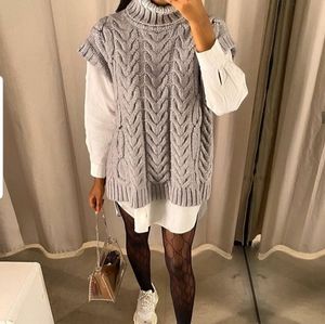 Grey - 8146/120. Sleeveless sweater with a high neck.