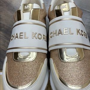 Brand new in a box authentic Michael Kors Teddi Trainer Pixie Fine Glitter Pale Gold 49S0TDFS2D