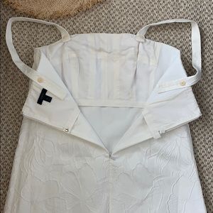 BEAUTIFUL dress🥰🥰perfect for any occasion—JCREW convertible strap dress in embossed white floral, so wear w/straps or strapless —inside is fully lined and has built in boning/bra to hold you up n in!!❤️brand new without tags**hat not included