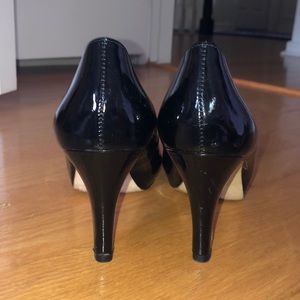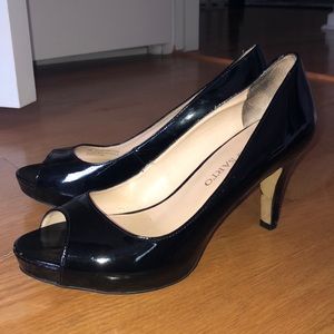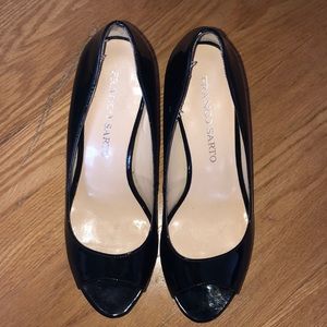 LIKE NEW only worn once Franco Sarto black patent leather open toe 3in heel. MAKE AN OFFER!