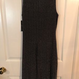 Brand new with tags, never worn. Gorgeous LRL black and silver metallic herringbone looking pattern dress. Fully lined with side shirring on left side. Nylon/Polyester/Elastane.