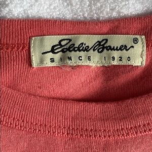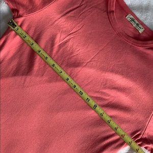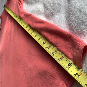 Very good condition, very nice coral color, no tag so my guess is a size small since it is 17” across laying flat pit to pit measurement. Very little signs of wear. Material feels like cotton like a t- shirt but better quality. See pics for measurements