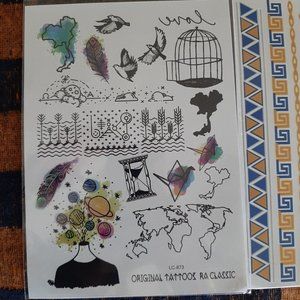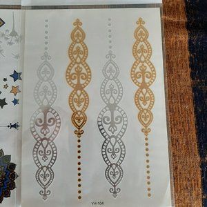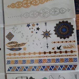 You will get 3 sheets of waterproof temporary tattoo. New without tags. Blue, gold, silver beautiful colorful tattoos.