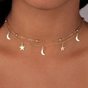 Double Layer Moon and Star Necklace