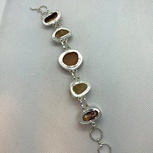 925 Sterling Solar Agate, Pearl, Citrine, Bracelet