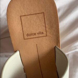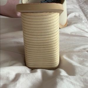 Women’s mules size 8.5 off-white with blue & white striped bows