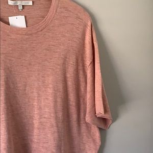 Beautiful antique rose color. Short sleeves, crew neck. Wide cut boxy style, raw edge. 100% cotton cashmere feel. Pre 💙no holes or stains. Offers welcome