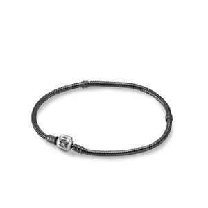 Authentic Pandora. Essentially, the Pandora oxidized bracelet is the standard Pandora silver barrel clasp bracelet, but with a chain treated to make it appear much darker in colour. This is achieved by exposing the silver to oxidising. Its significantly darker than the regular silver bracelet and offers an edgier look in comparison. There is no price difference between the two bracelets, as the oxidised bracelet is merely a treated version of the original silver bracelet. Item#590702OX