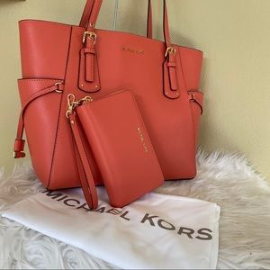 100% authentic brand new with tag Michael Kors voyager EW large shoulder tote pink grapefruit color