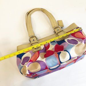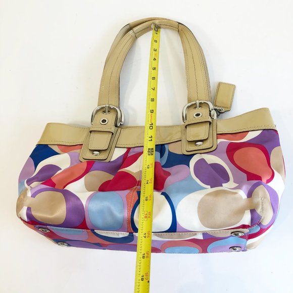 Coach Signature Soho Pleated Scarf Print Bag Multicolor Pockets Womens F13798