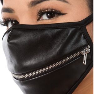 New Protective Fashion Black Faux leather facemask w/ zipper