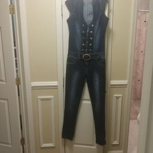 Nwt sexy denim jumpsuit. Size XL but fits an 8/10 best. I'm a 6 or 8 depending on brand. 34 d chest. I'm 5'5" for reference and it's a lil long. Has built-in belt. Hubby bought for me at a boutique in Vegas.