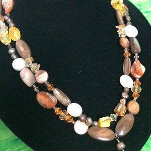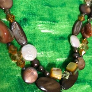 ART GLASS EARTH-TONED BEADED STACKED NECKLACE 925 SILVER CLASP. 18” LONG 70g. PURCHASED NECKLACE AT AN ESTATE SALE. I HAVE THE TENDENCY OF ALWAYS LOOKING FOR JEWELRY, AND MY GIRLS NOT INTERESTED IN KEEPING ANY OF MY JEWELRY.