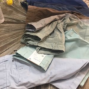 Bundle of Men’s 9” long shorts (two pair are 11” long)...various designers like Tommy Hilfiger and others. Sizes range from 32 to 33. Lots of shades of light powder blue, seaform green to burnt orange and navy. Cleaning out our closets...these gently used shorts need a new home...🤗. Will consider reasonable offers. Thank you looking!