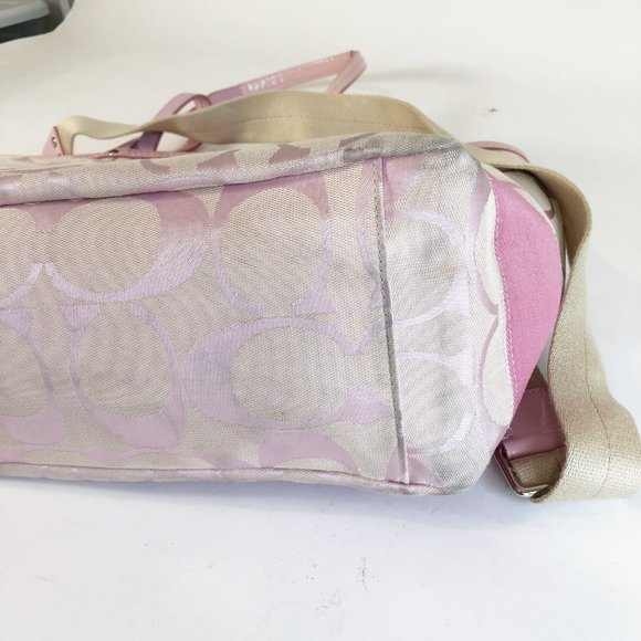 Coach Baby Pink Jacquard Signature Diaper Bag Tote Zip Top Pockets Womens F13803