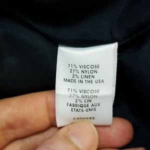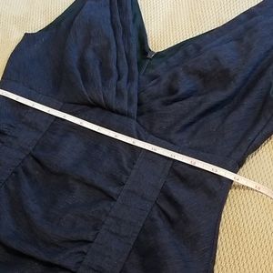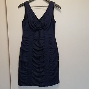 Navy blue with subtle shine, sexy cocktail dress. Worn once. Pristine condition. I loved it with a bright orange/red belt. Fully lined and made in the US. Am selling because I'm now a 10 after having my kiddo.