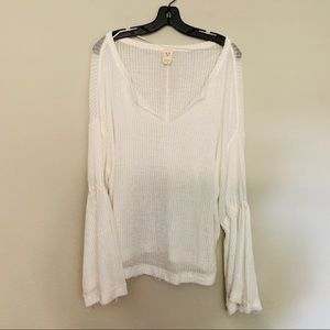Free People Distressed White Bell Sleeve Thermal