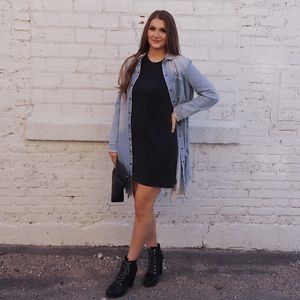 Brand new never worn. Black t shirt dress. Extremely comfortable fabrication! Perk-a-boo details in the back.