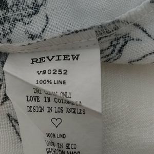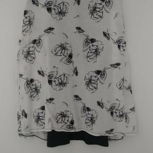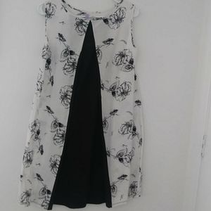 SALE Women Linen Floral High Low Midi Dress Loose Fit Black and White. Size L.
