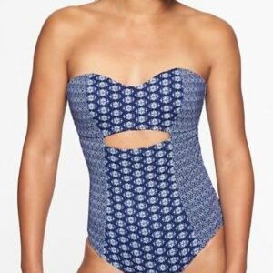 Athleta Tangier Cutout One-piece Swimsuit. Size medium. Blue Tile pattern.