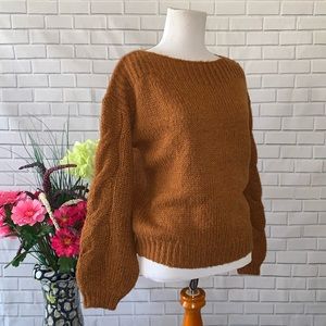 Give your collarbones a little breathing room in this fuzzy boatneck sweater with cable knit details on the sleeves. With a boxy shape and dropped shoulders, it looks perfect with flares or an A-line mini skirt.