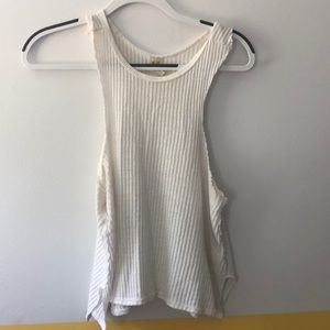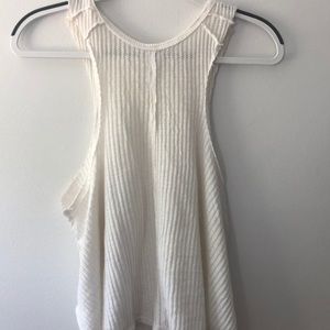 Ribbed, soft, white, free people tank with detailing at the neck and back seam