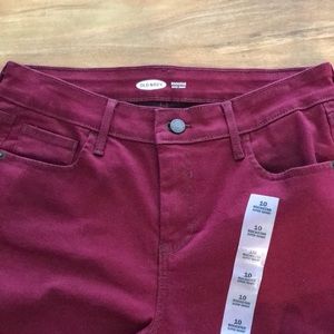 These maroon high-waisted skinny jeans are new, but I removed the main tags when I hung them up in my closet. The size tag is still on the left leg (as pictured). These are size 10 and a comfortable fit. Two pockets on the front and two on the back. Make an offer! ☀️☀️☀️