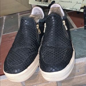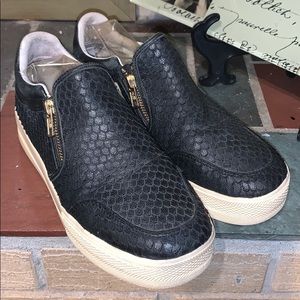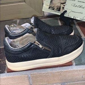Ash "Jordy" Black Leather Python Chunky Sole Trainer Gym Shoe Side Zip