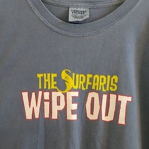 The Surfaris T-Shirt for sale used condition worn one time see pics this shirt is in great shape like new and vintage bought at the reunion show when they played a place called Angel city cafe in Bellflower a while back rare find yes this is the world famous Song (Wipe Out ) from the 60's....... vintage t-shirt rare shirt color is blue light blueish gray it really nice and soft