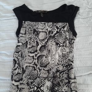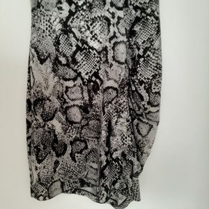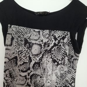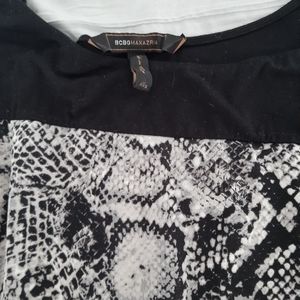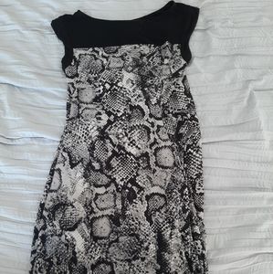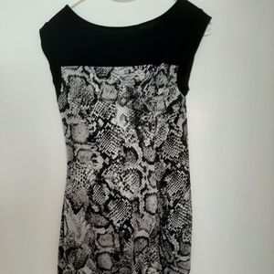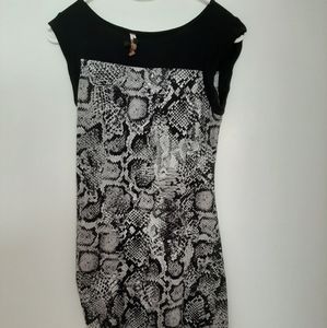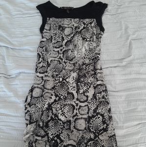 BCBG MaxAzria Mini Dress With Snakeskin Print . XXS, figure hugging bodycon in black and gray looks sensational on a night out. Heels and a clutch and you will look sensational.
