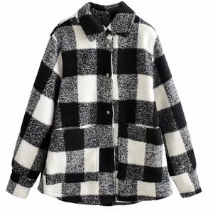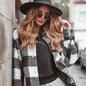 Fully lined - real pockets - snap button cuff & front closure - black white plaid - oversized coat jacket fall winter trucker
